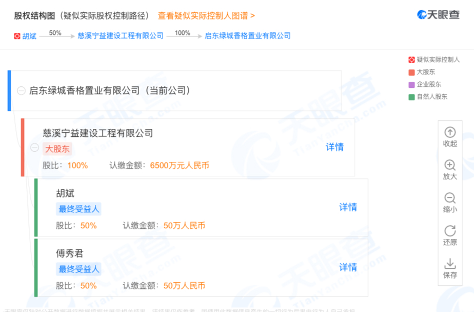 绿城香格股权结构图。来源:天眼查 维权过程中,业主们得知了另一个消息,这个名字中带有“绿城”两个字的绿城香格,与绿城集团并没有隶属关系。 天眼查数据显示,绿城香格由慈溪宁益建设工程有限公司(以下简称“慈溪宁益”)100%持股,而后者由胡斌、傅秀君两个自然人股东各自持有50%的股份。进一步查询发现,2015年12月,绿城香格的股权结构发生变更,绿城房地产集团有限公司退出了绿城香格股东之列,慈溪宁益成为唯一股东。 绿城与绿城香格则是代建关系,并受到后者所累。今年1月13日,绿城房地产建设管理集团有限公司华东区域公司发布了《关于玫瑰园项目四期延期交付的公告》,称启东玫瑰园是由慈溪宁益投资建设(持有项目开发商绿城香格100%股权),委托他们提供开发建设管理服务的项目。 公司作为项目代建方,在开发商长期拖欠代建服务费的情况下仍未撤离,一直努力督促开发商解决资金问题,竭尽全力协调施工单位在工程款拖欠的情况下将项目工程建设至基本完工,避免了项目中途烂尾、给客户待了更大损失的可能。 林兴表示,至近日,项目四期勉强交付,高层的业主们已经办了房产证,但多层项目只是交了钥匙和购房发票,水电仍未开通。 代建项目授权使用“绿城”品牌 投诉非个案 对于自身开展的代建业务,绿城管理控股有限公司(以下简称“绿城管理”)在今年2月底发布的招股书中这样解释: 帮助项目拥有人(主要包括私营物业开发商、国有物业开发商及政府单位)主导物业开发程序,并提供涵盖整个物业管理生命周期的全方位代建服务。 商业代建是绿城管理最主要的收入来源,启东绿城·玫瑰园项目就属于这种类型。招股书称,在商业代建中,绿城管理通常与商业项目拥有人订立一份管理协议,据此同意于物业开发项目的整个过程中提供各类服务,一般包括前期管理、规划设计、工程管理服务、成本控制、营销、销售服务、交付管理及售后服务。