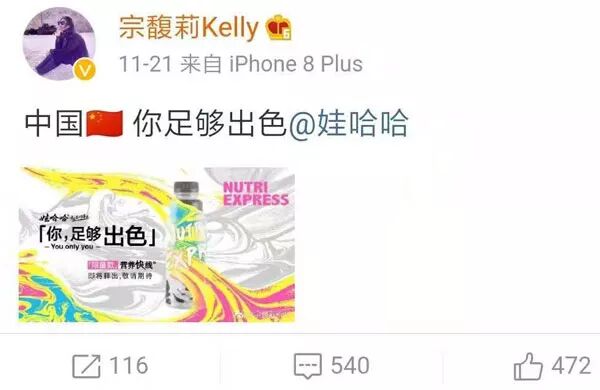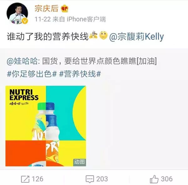 而与之配套的营养快线一改过去十几年来一如既往的朴素风格,换上了“青草绿”和“桃花粉”的新“外衣”。除此之外,宗庆后及其女儿宗馥莉也纷纷在微博上打call。