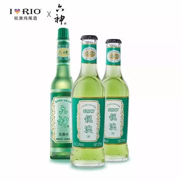 六神鸡尾酒由六神和百润股份下属公司RIO合作开发,复刻的是六神最经典的绿色包装玻璃瓶花露水,瓶身较花露水原版稍矮,纸质的LOGO将“六神花露水”字样换为“RIO锐澳”。且酒的颜色也调制成六神花露水的淡绿色,两者的相似程度超过90%。