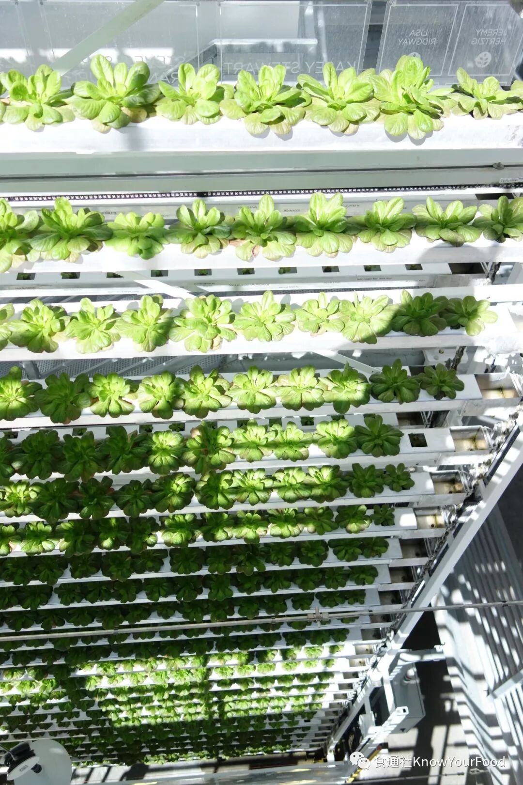 美国怀俄明州一家垂直农业工厂,五六层楼高,植物架子如摩天轮般缓慢升降,确保植物平等地获取阳光,保持长势一致,方便采收和包装。摄影|食通君