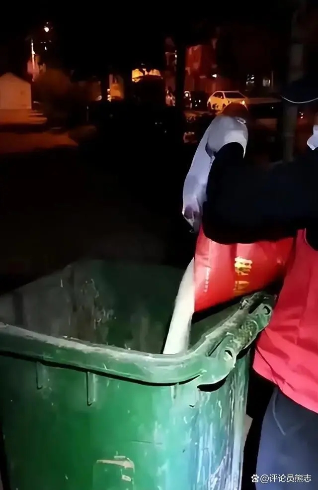 任何一个有良知的人,都不会将整袋大米直接倒垃圾桶,还理直气壮,义正言辞。