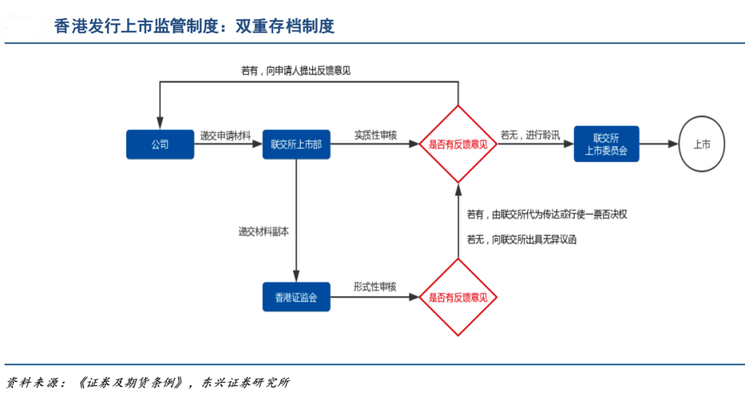 根据香港《证券及期货条例》及其配套规则的规定,申请人的申请材料递交联交所后,副本会交予香港证监会存档,同时联交所与证监会进行双重审查。