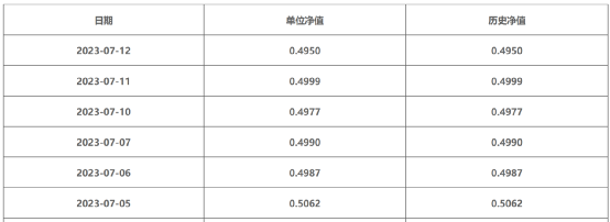 “阳光红卫生安全主题精选”这只理财产品的单位净值在今年7月6日首次跌破了0.5元,跌至0.4987元。官网数据,截止今年7月12日,该理财产品的净值为0.4950元;而中国理财网数据显示,截止7月13日,该产品净值为0.4999元。