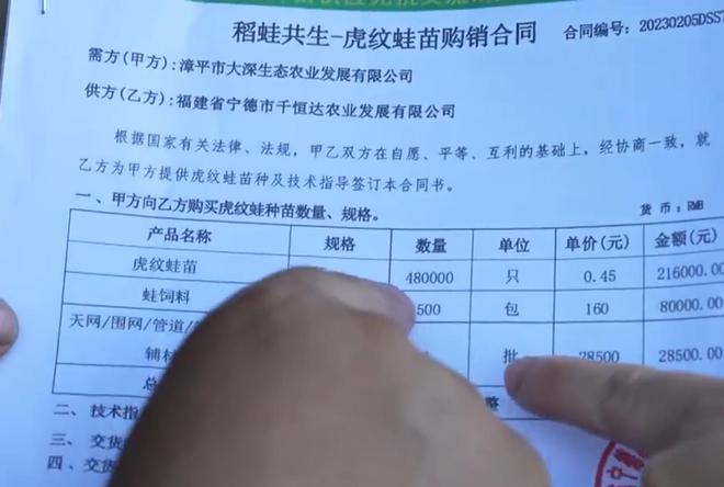 陈美香拿出了购买蛙苗的合同,合同显示她购买的就是虎纹蛙以及黑斑蛙。蛙种企业的负责人也出面,保证自己出售的就是这两种蛙。