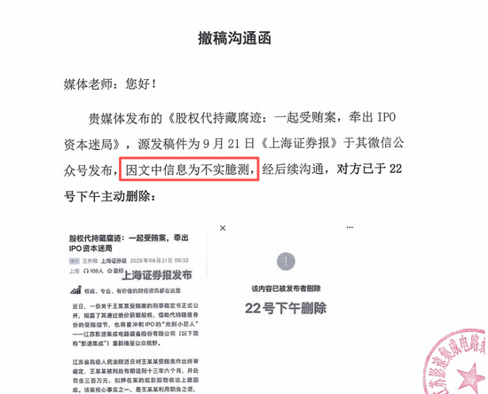 近日,多家财经自媒体向传媒见闻透露,他们几乎在同一时间段,收到了同一家公司的撤稿函。理由如出一辙,都怪到一家媒体头上:《上海证券报》撰写的文章,信息为不实臆测。
