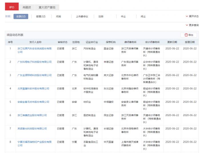 时隔一周以后,6月22日晚间,深交所终于披露了创业板注册制改革后受理的首批存量企业,即32家企业IPO的申请以及1家企业再融资的申请。